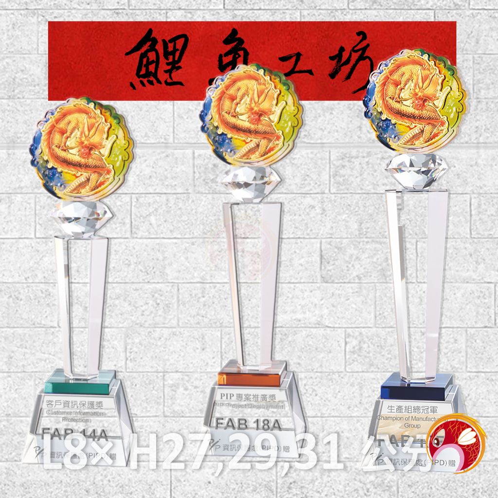 彩色金箔貼琉璃+水晶獎座